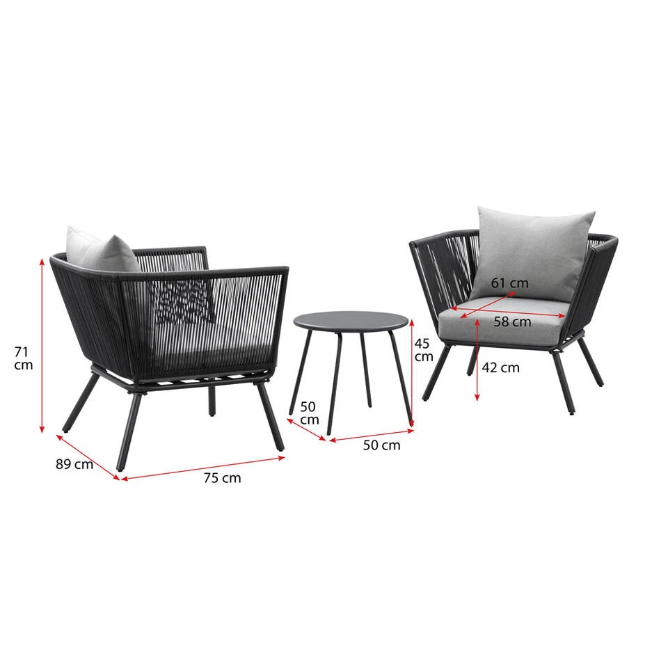 – Afmeting loungestoel: 75x89x75 cm