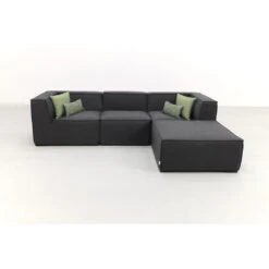 Aluminium is weerbestendig en is onderhoudsarm. De set bestaat uit een koffietafel en drie losse elementen, welke gemakkelijk aan elkaar te koppelen zijn. Het frame is voorzien van mooie kussens. Deze zijn van een sterke buitenstof Olefin met een vulling van standard foam.