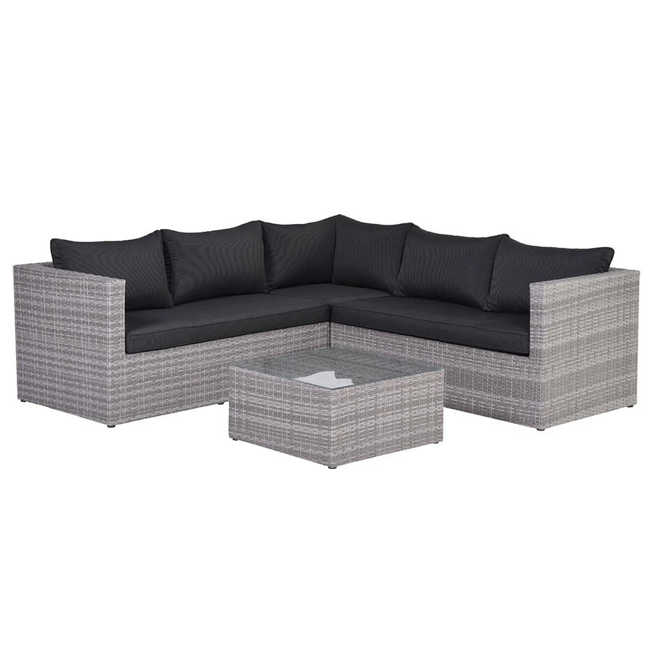 De Lyon loungeset bestaat uit twee ruime lounge bankdelen, één hoek element en één tafel met geharde glasplaat. De losse onderdelen van deze set zijn door middel van clips aan de onderzijde aan elkaar te bevestigen, zodat de elementen niet kunnen verschuiven. Deze weerbestendige set is gemaakt van een stevig aluminium frame met daaromheen een kwalitatief wicker vlechtwerk draad in de kleur organic grey. Dit wicker is gemaakt van stevig kunststof waardoor de set zeer duurzaam is.