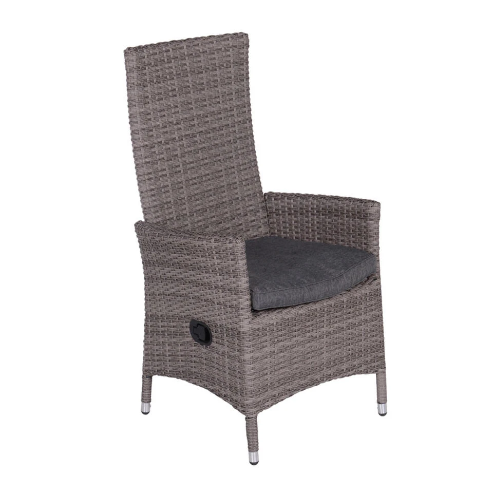 De Nice verstelbare tuinstoel is vervaardigd uit een onderhoudsvrij aluminium frame. Daaromheen is, met de hand, weerbestendig 2-half wicker vlechtwerkdraad in de kleur organic grey gevlochten. Het wicker is gemaakt van een stevige kunststof waardoor de set zeer duurzaam is. Deze stoel wordt compleet geleverd met een polyester zitkussen van hoogwaardige kwaliteit.