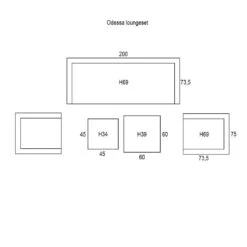 Afmeting loungebank: 200 x 73,5 x H 69 cm