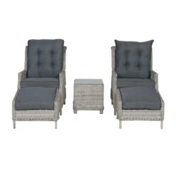 De loungeset wordt geleverd met comfortabele kussens van 9 cm dikte. De kussens zijn gemaakt van hoogwaardige kwaliteit polyester en zijn voorzien van een rits. De hoezen zijn hierdoor eenvoudig met de hand te wassen. De kussens zijn wel voorzien van een waterafstotende coating. Stel dat er drinken gemorst wordt op de kussens, dan is dit eenvoudig er vanaf te vegen. De kussens zijn dus niet 100% waterdicht. Na het gebruik van de kussens kunnen deze opgeborgen worden in de schuur of in een kussenbox.
