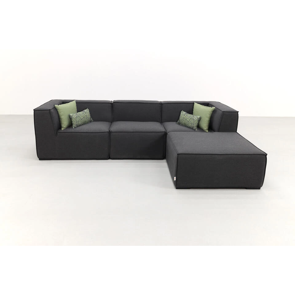 De Liberty Sunbrella loungeset bestaat uit allemaal losse elementen. Bij dit model zijn dat 2 hoekelementen, 1 middenelement en een hocker. De losse elementen kunt u naar eigen wens indelen. De Liberty loungeset elementen hoeven bij levering niet meer gemonteerd te worden. Je hoeft alleen de juiste opstelling te maken en het ontspannen kan beginnen!