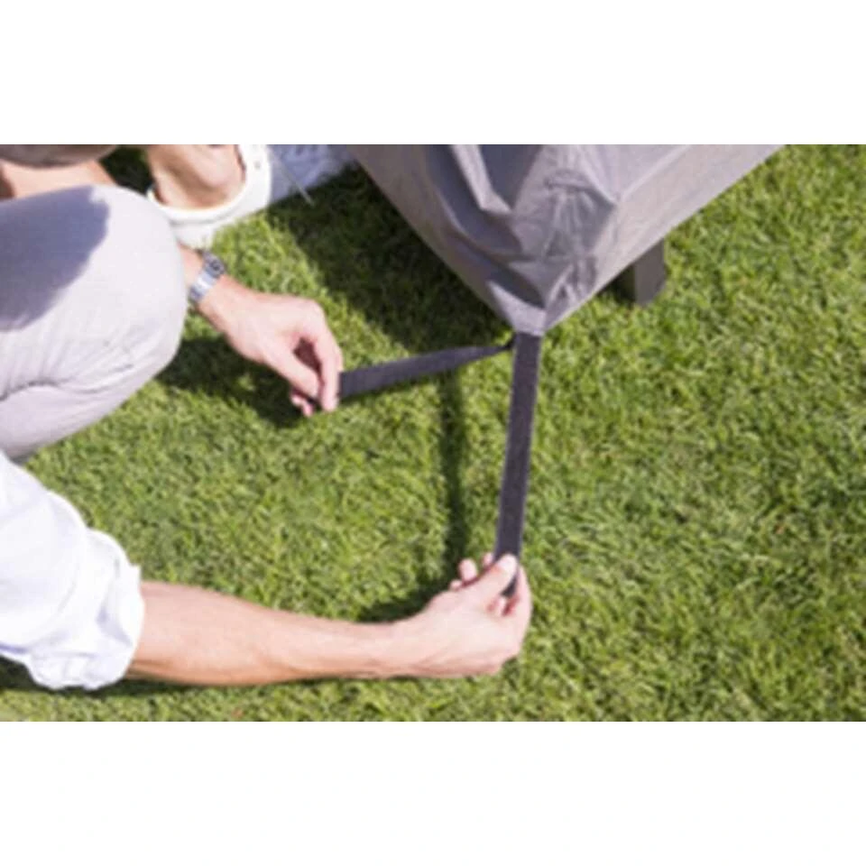 Door middel van klittenband kun je de hoes aan het tuinmeubel vastmaken.