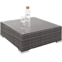 Voor in de tuin of binnen. Onze tuinset gemaakte van wicker kan veelzijdig gebruikt worden en geeft uw tuin, terras, wintertuin of woonkamer net dat ietsje meer. De comfortabele stoelen en de elegante tafel garanderen aangename uurtjes. De wicker set overtuigt niet alleen met zijn elegante look, maar ook met zijn lange levensduur. Door het lage gewicht kunnen de meubelen gemakkelijk verplaatst worden. Het glazen tafelblad ziet er heel stijlvol uit en is heel gemakkelijk te reinigen. De comfortabele polyester zitkussens zijn qua kleur perfect afgestemd op de tuinset en beschikken aan de achterzijde over een rits, zodat de kussenhoezen gemakkelijk gereinigd kunnen worden. Om de kussens te beschermen tegen doordringend vocht is het oppervlak geïmpregneerd. Zo rollen vuil- en waterdruppels er gewoon af. Door de verschillende elementen kan de set volledig naar wens opgesteld worden.