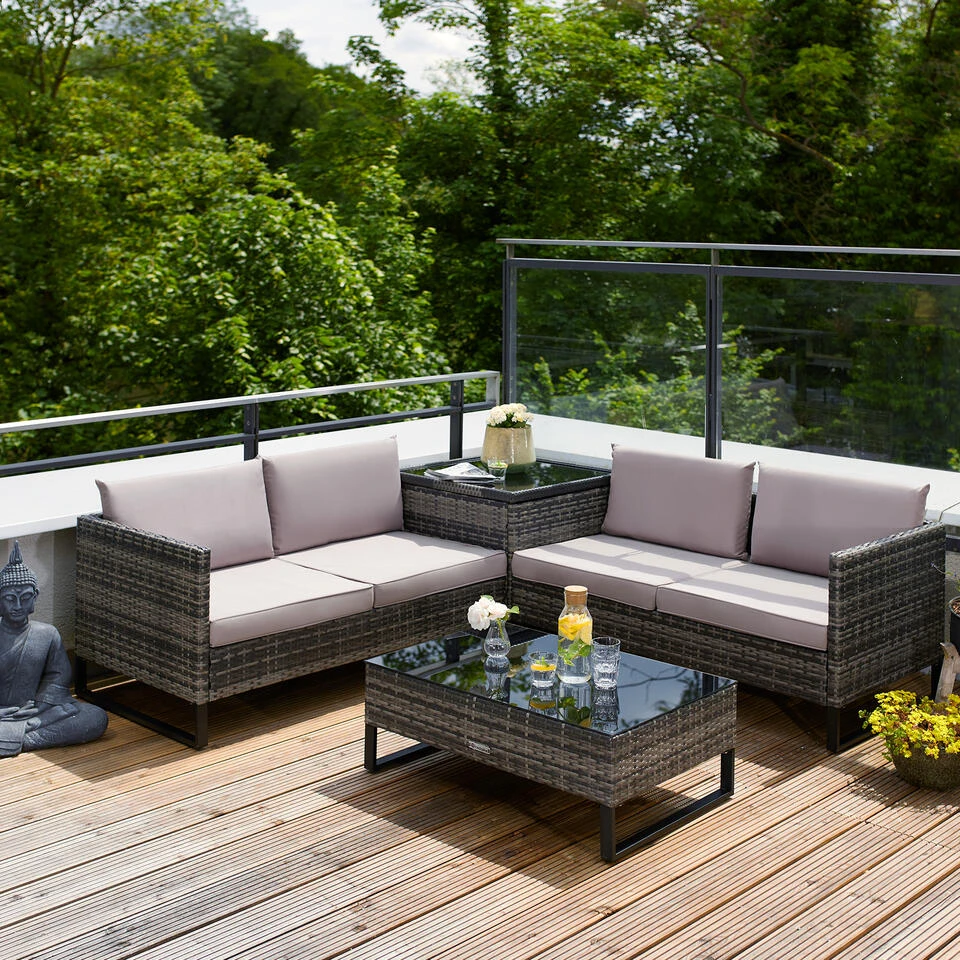 Gezellige rotan lounge met vrij te groeperen elementenStrapazierfähiges Geflecht aus UV-beständigem Polyrattan